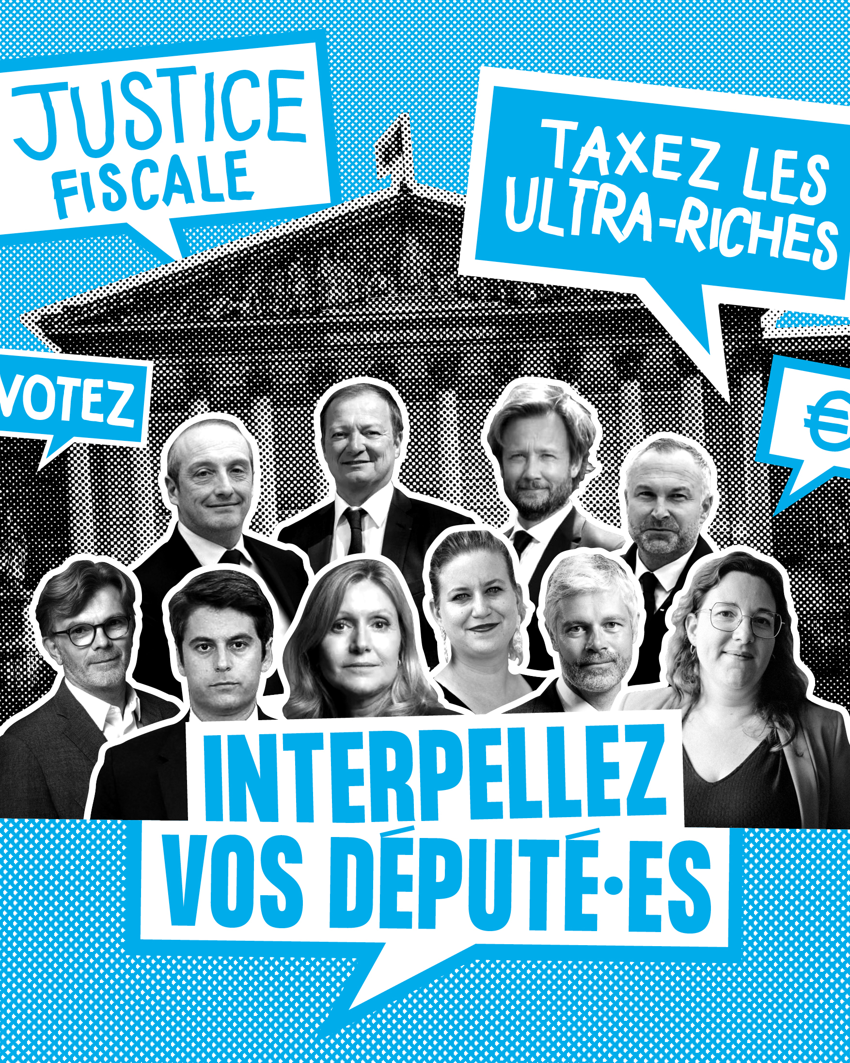 Oxfam France communique en réaction aux annonces gouvernementales, et m’a missionner pour faire les visuels destinés aux réseaux sociaux à plusieurs reprises. Que ce soit pour la publication de 9 mesures de fiscalité climatique sur la consommation et le capital ou pour les annonces du Premier ministre du 15 juillet. Les visuels sont visibles sur leur réseaux sociaux Instagram, LinkedIn et Bluesky.
