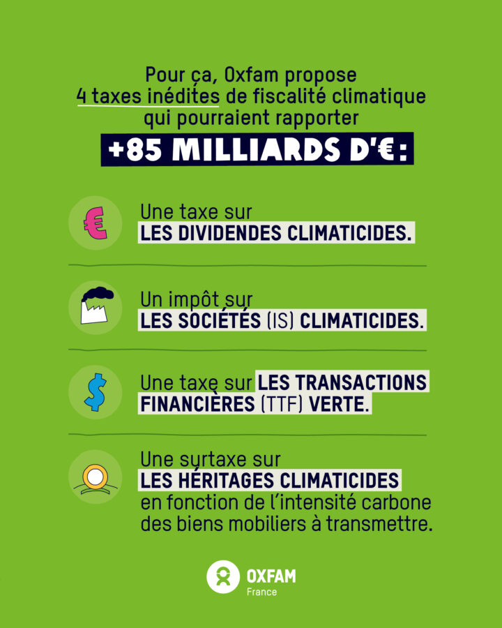 Oxfam France communique en réaction aux annonces gouvernementales, et m’a missionner pour faire les visuels destinés aux réseaux sociaux à plusieurs reprises. Que ce soit pour la publication de 9 mesures de fiscalité climatique sur la consommation et le capital ou pour les annonces du Premier ministre du 15 juillet. Les visuels sont visibles sur leur réseaux sociaux Instagram, LinkedIn et Bluesky.